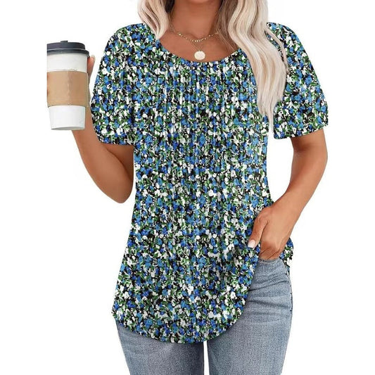🔥2025 HOT SALE 50% OFF🔥 Round Neck Pleated Short Sleeve Printed T-Shirt