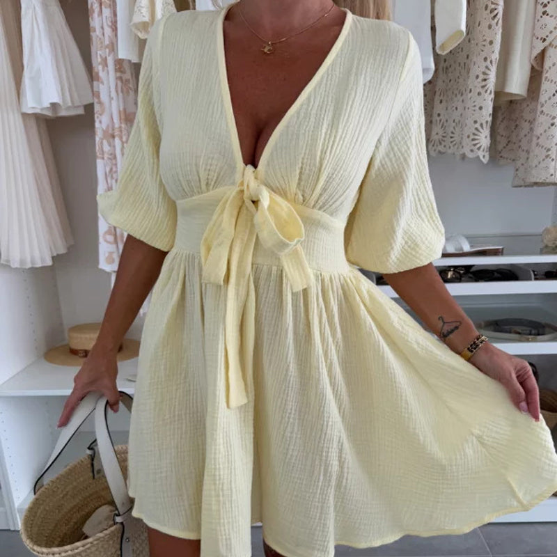 ⏰Last Day Hot Sale!!⌛Casual V-Neck Solid Color Mini Dress