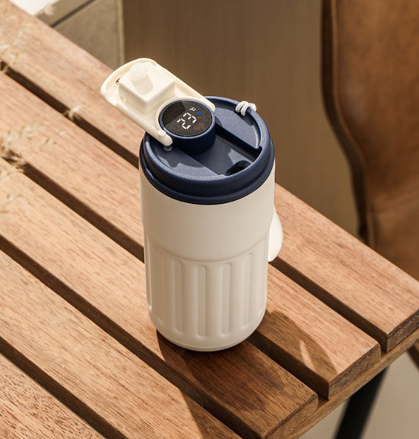 Introducing our portable coffee mug with temperature display, a must-have for coffee fans who appreciate precision and convenience.