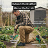 You’re lifting, kneeling, working — and your legs feel warm but breathable. No stiffness. No freezing denim. No wet thermals.