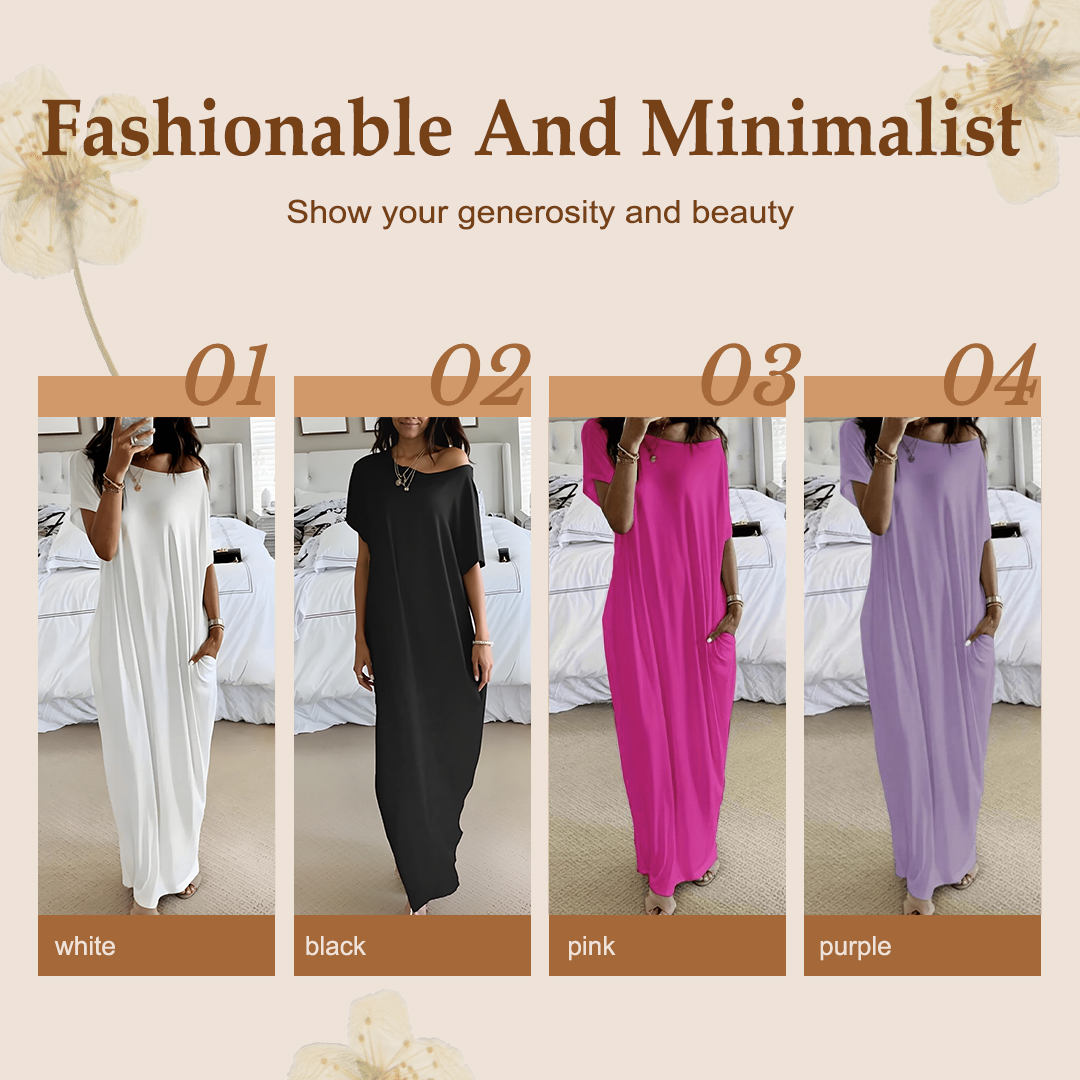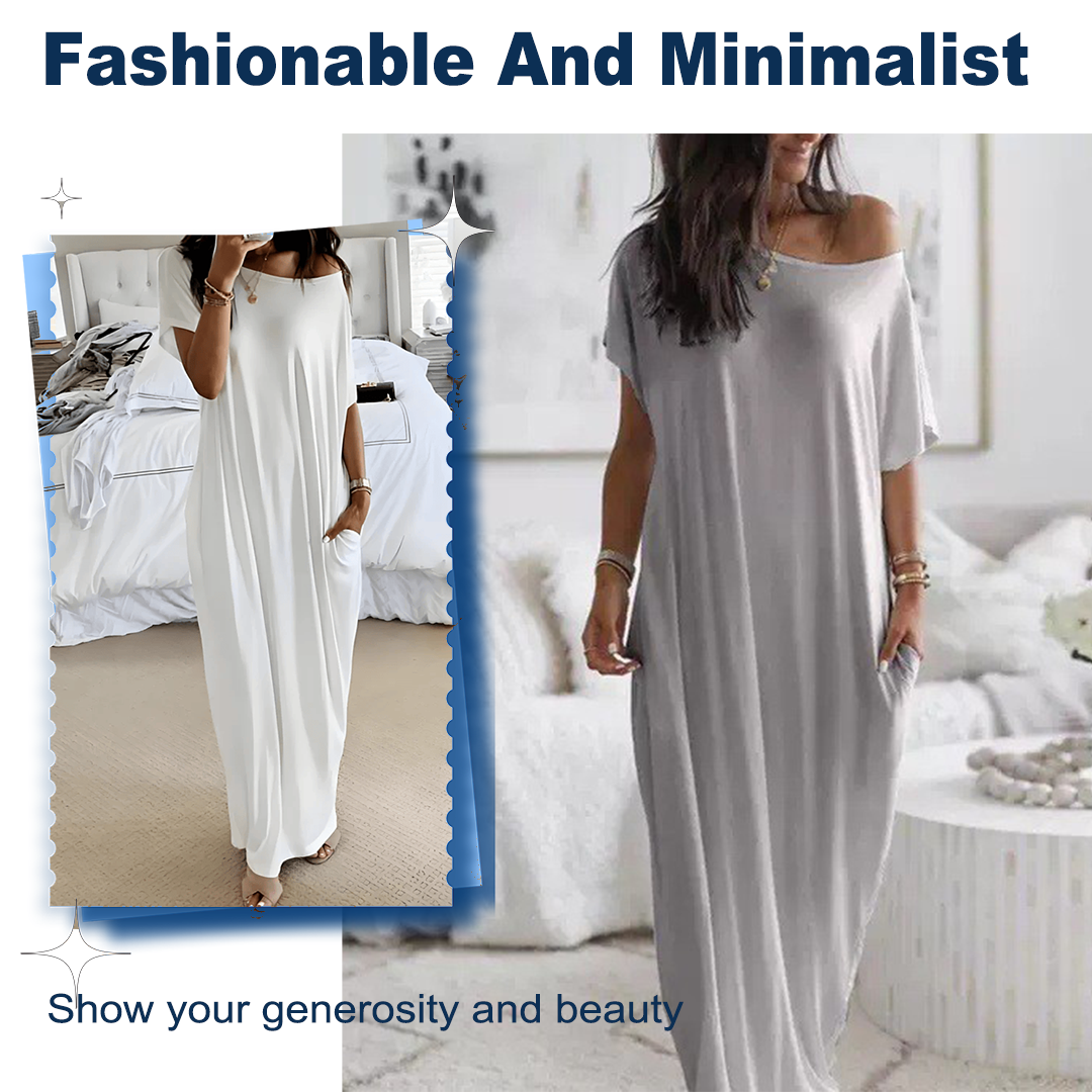 FOR ALL BODY TYPES - The loose, straight silhouette covers the body comfortably and suits all shapes. The wide neckline can be worn off-the-shoulder for a one-shoulder look, while the flowing length offers leg coverage without compromising on style.