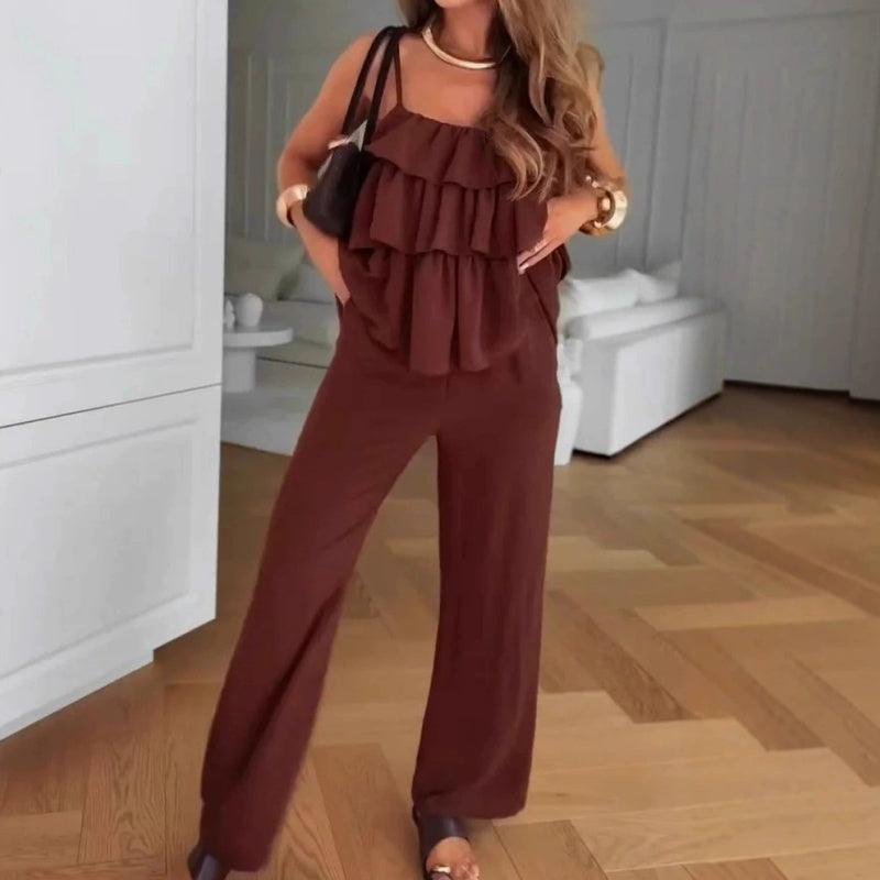 Package Includes:1*Sleeveless Layered Ruffle Detail Jumpsuit