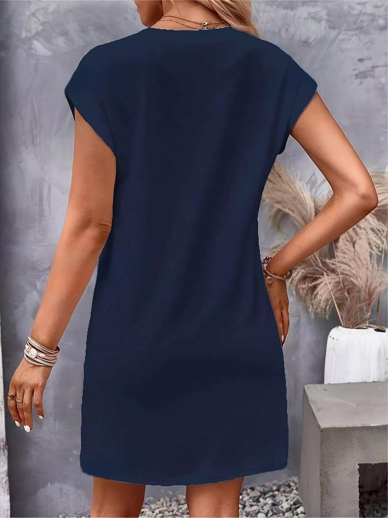 SOLID COLOR DESIGN WITH TRIM DETAIL: This dress features a clean, solid-color finish that eliminates pattern distractions and enhances versatility. A refined touch comes in the form of three decorative buttons placed on the left shoulder — adding visual interest while maintaining a minimalist aesthetic.