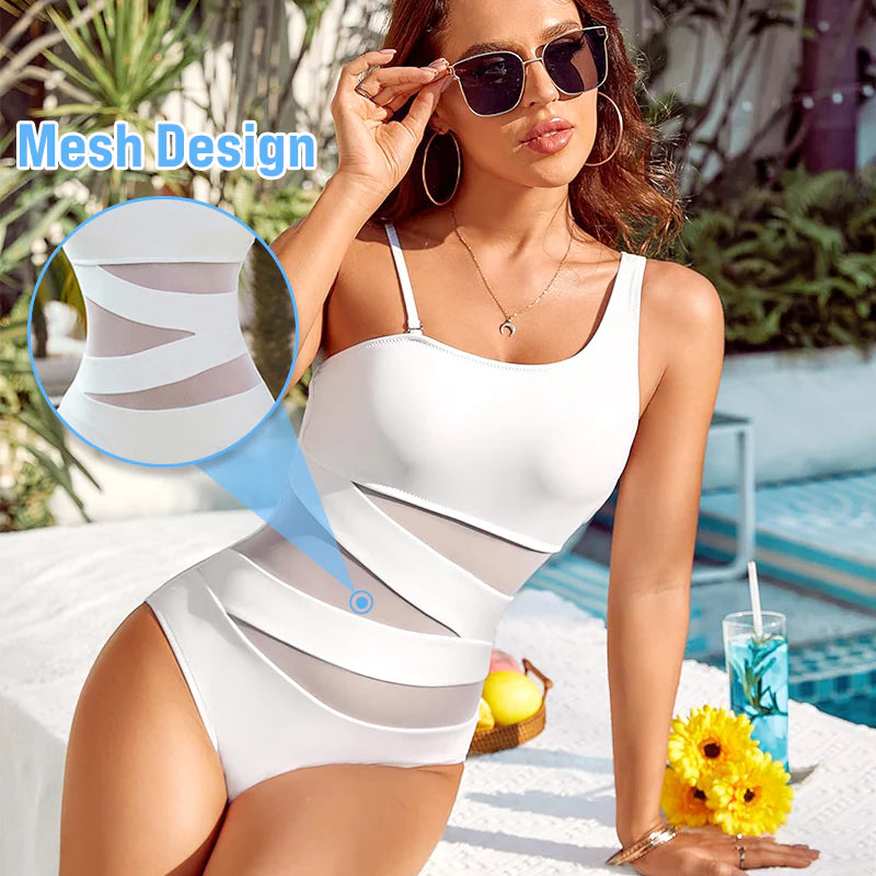 💕🏖️2025 New Type 49% OFF🔥 Sexy One Piece Swimsuit One Shoulder Swimsuit Slim Mesh Swimsuit