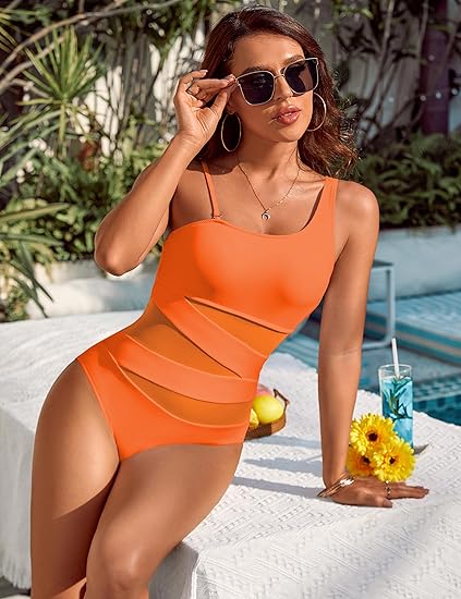 Sexy one-shoulder swimsuits feature a mesh patchwork and see-through design. The backless style and slimming cut beautifully highlight your curves, creating a cute look that showcases feminine allure.