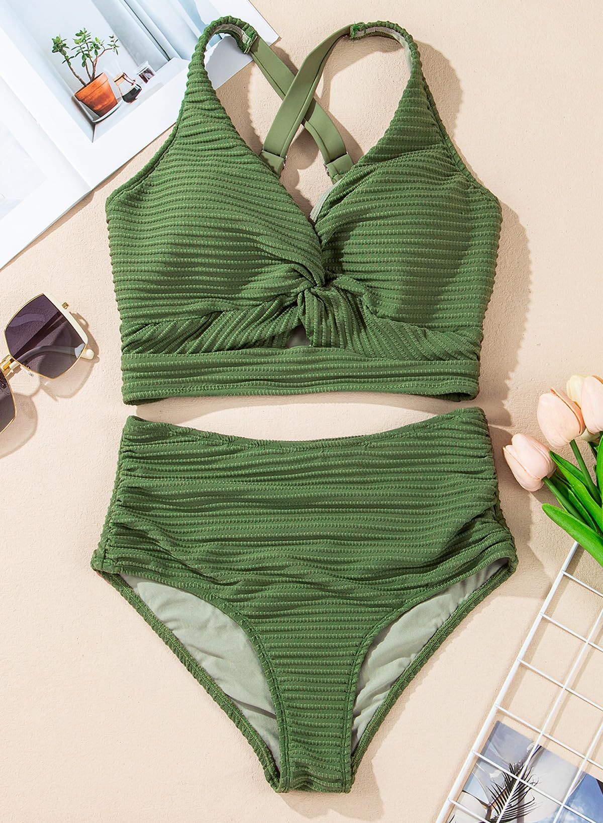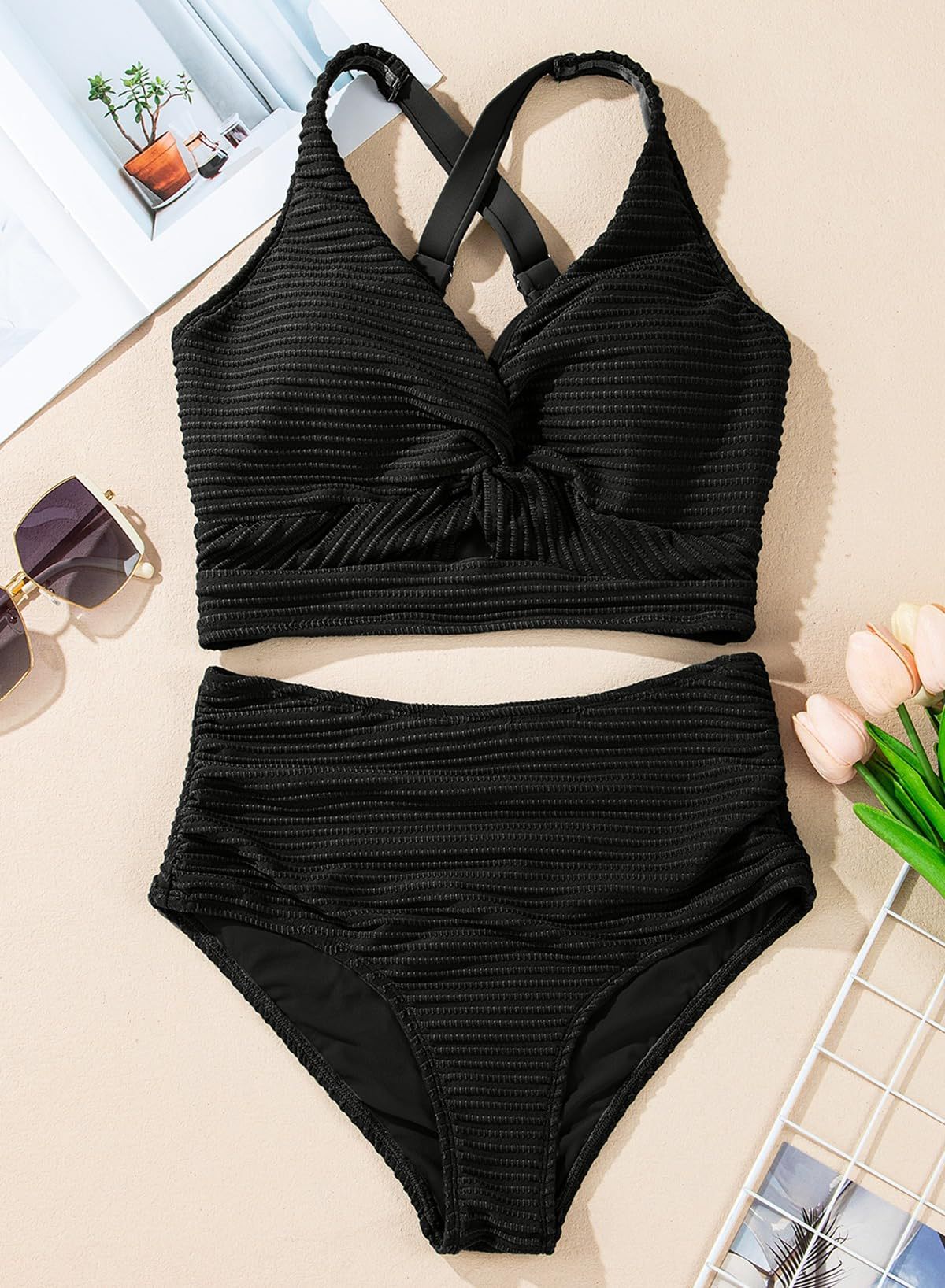 👙👙2025 New Type ~50% OFF 👙Textured Knot-Front High-Waisted Bikini Set